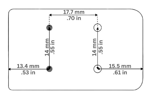 • det har 2 skruvhål i bakre centrum 14 mm från varandra.