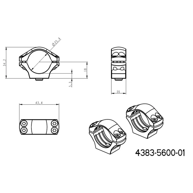 Kikarsiktesfäste för installation av alla sikten med matchande diameter på huvudröret.