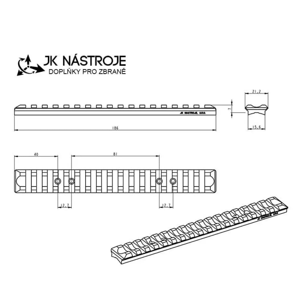 Tillverkad i Tjeckien av JKN. Material: stål. Vinkel: 0 MOA.