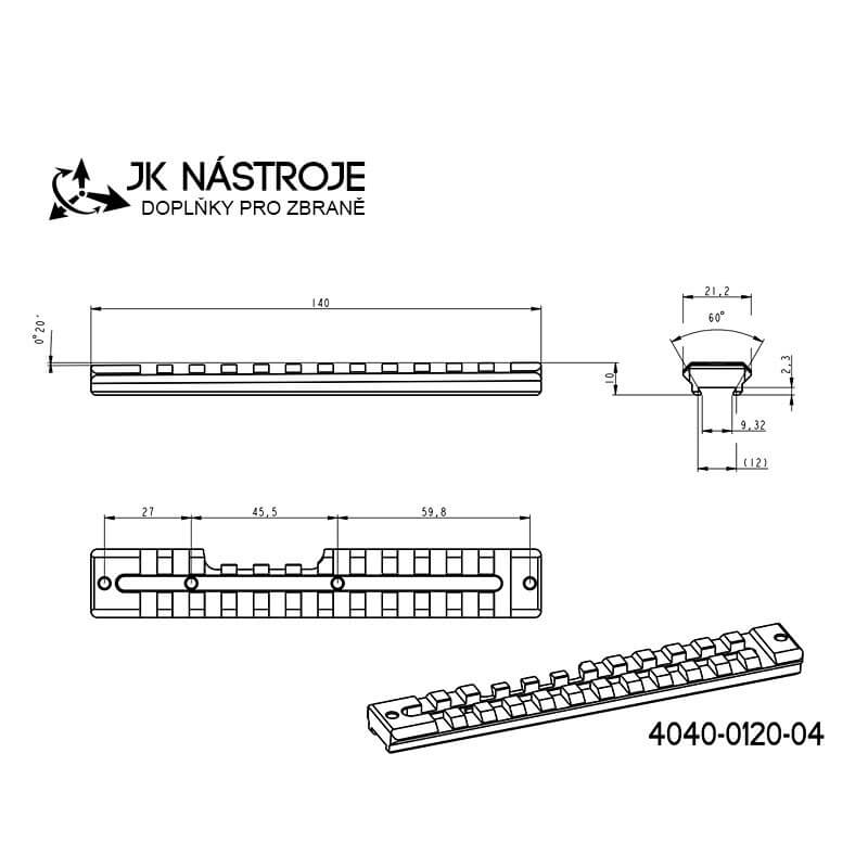 Picatinny skena [sikte bas] för installation av kikarsiktesfäste med Picatinny-bas.