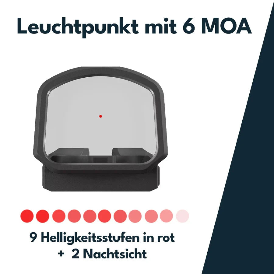 Den större, prestandabelagda asfäriska linsen ger ett klart synfält för snabbare målförvärv vid draget och snabba förflyttningar mellan mål. Huset i flygplansaluminium har förstärkts och en integrerad bottenplatta har lagts till samt en ny batterilåda i aluminium för ökad tillförlitlighet vid montage på mantel.